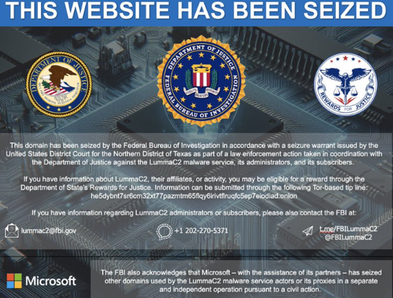 - 2025 年 5 月 19 日:美國政府查封與 LummaC2 相關的兩個主要網域。