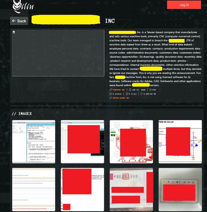 近期,台灣一家上市工具機大廠傳出遭到麒麟(Qilin)勒索軟體集團攻擊,6 月 25 日駭客於暗網宣稱已從企業內部伺服器中取得高達 2TB 的機密資料。根據竣盟科技 B-Lab 情資揭露,駭客同步貼出了 8 張螢幕截圖作為入侵證據,內容相當多元——包括疑似市面流傳的 Adobe 大師版安裝資訊畫面、一個名為 crack.rar 的 AutoCAD 破解壓縮包的畫面、員工的身分證影像、設計圖,以及和供應商往來的電子郵件等。比較引人注目的,是駭客不只曬資料,還順帶揭露該企業可能使用未授權軟體的狀況,讓這起事件從駭客入侵延伸到資訊安全與合規問題。