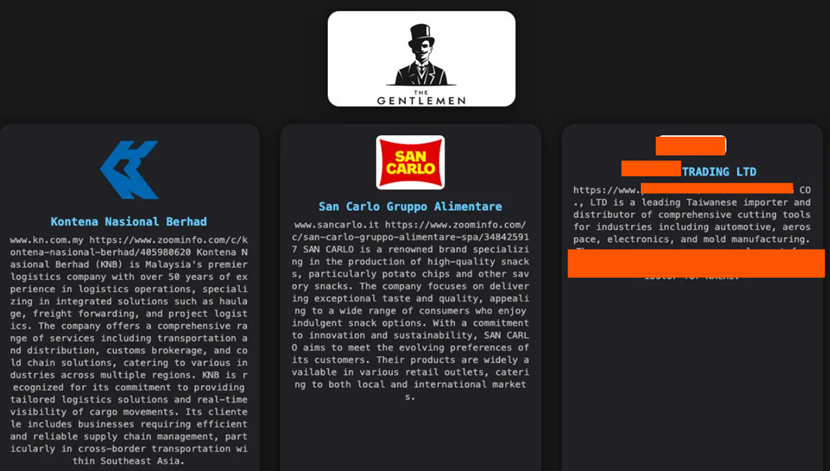 OO貿易有限公司,出現在 Gentlemen 勒索軟體名單中;